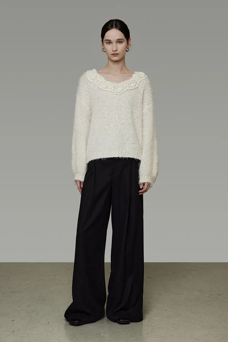 Tyget i Women's 3D Lace Sweater är tillverkat av 100 % polyester högkvalitativt plyschgarn, som har en mjuk och fluffig textur, är hudvänlig och icke-irriterande, har utmärkta värmebevarande egenskaper och är lätt utan att orsaka kroppstryck. Den övergripande stilen lutar mot en avslappnad och avslappnad look, som kombinerar värme och mode. Det är bekvämt och bekvämt att bära på hösten och vintern, och det är osannolikt att deformeras eller tappar bollar med tiden. Kvaliteten är stabil, vilket minskar kostnaderna för kundservice efter försäljning.
