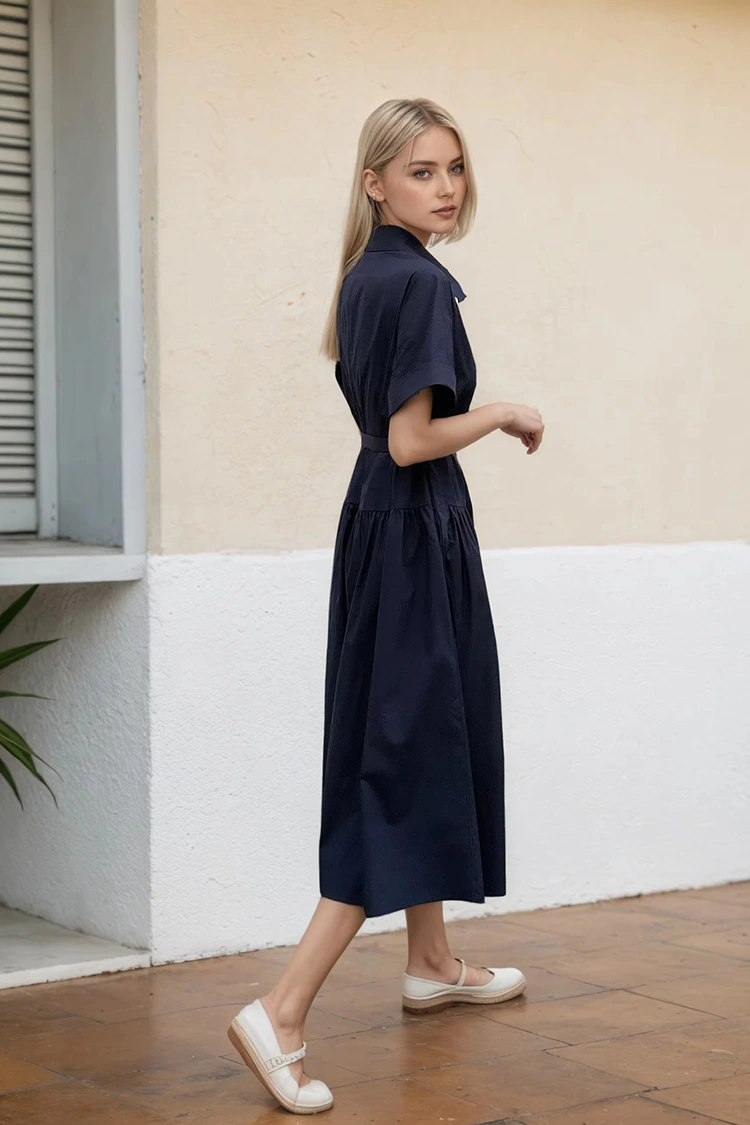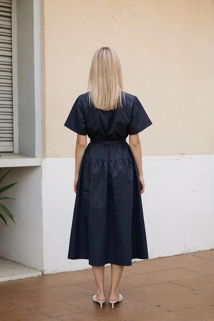 RUIFAN är en professionell tillverkare och leverantör av kontorsklänningar för kvinnor med svart skjorta i Kina. Vi har över 25 års erfarenhet inom klädbranschen. Den här klänningen behåller den klassiska kragen och slitsen som en skjorta, som förkroppsligar både professionell elegans och en avslappnad vardagsstil.