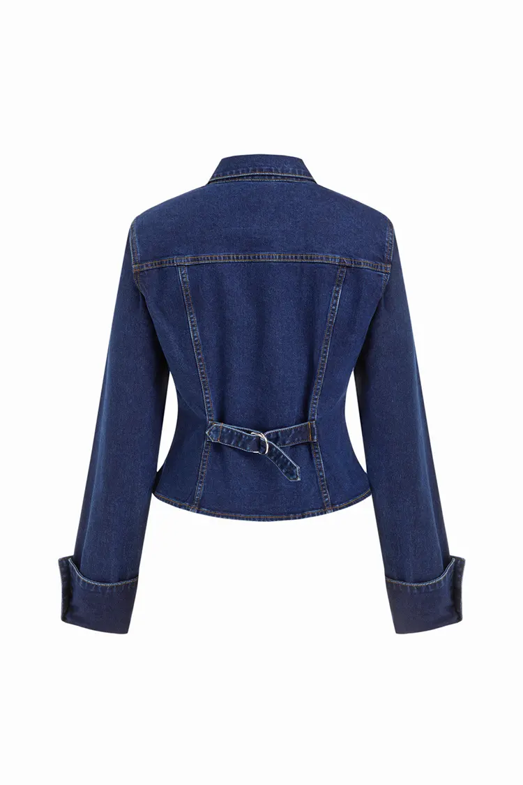 Tvättad kofta i jeansslag med knapp framtill för kvinnor