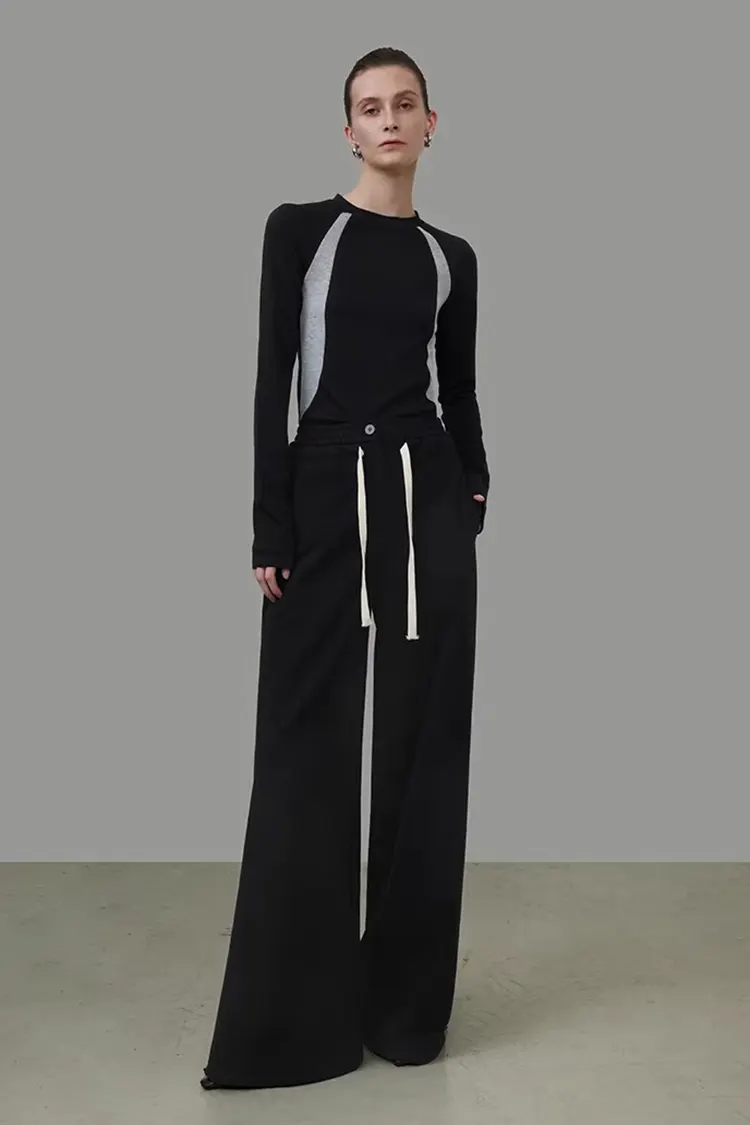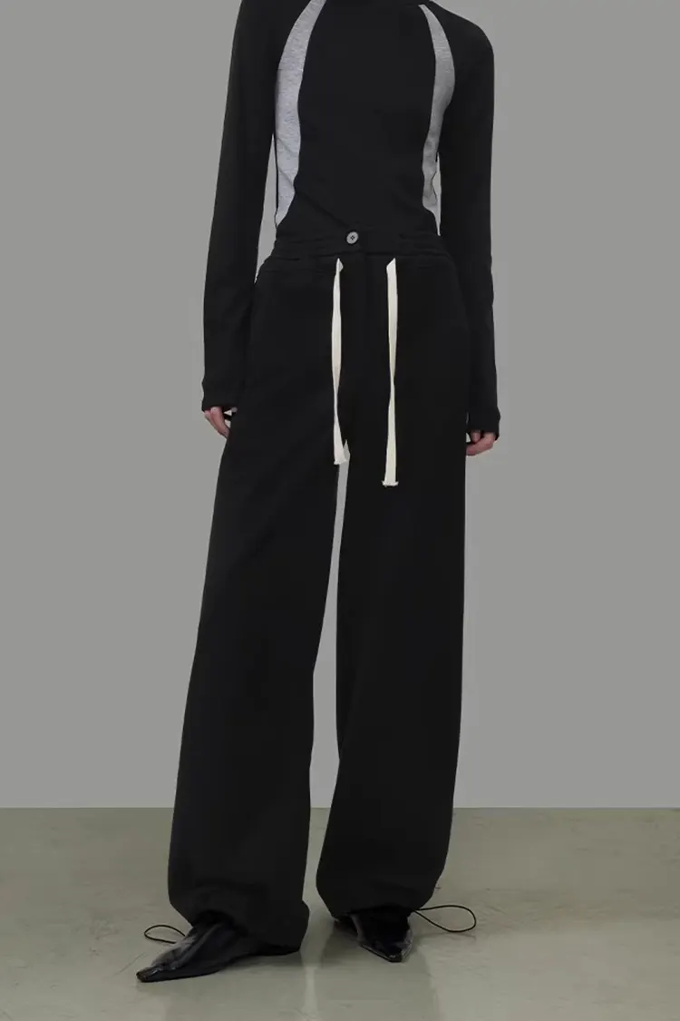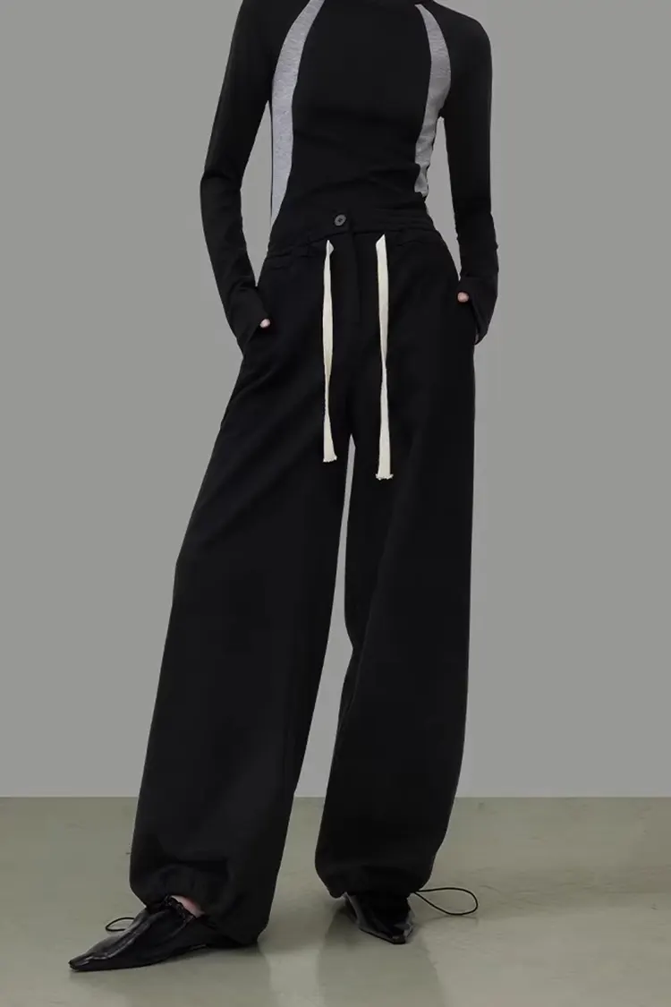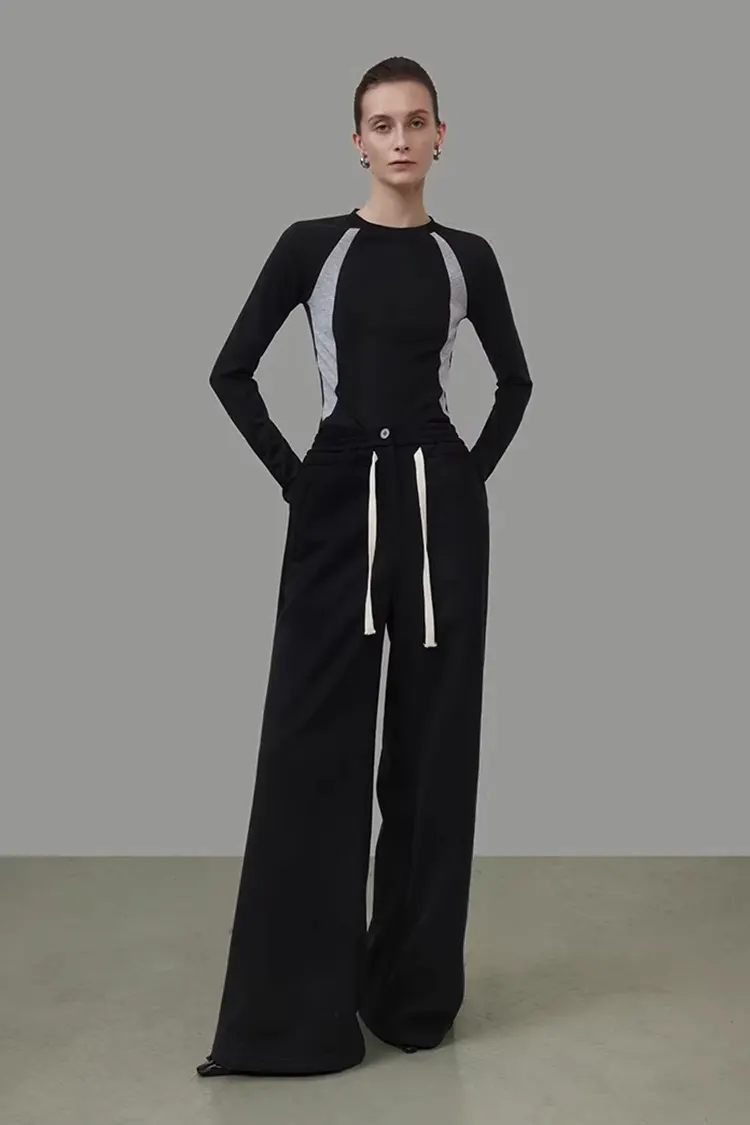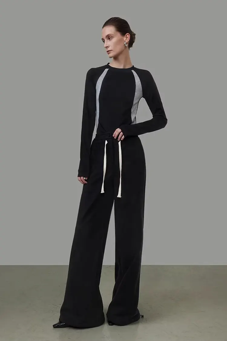 Vi antar mikro A-formade byxor med breda ben och 3D tredimensionell skärning. Efter flera justeringar av detaljer, passar formen den asiatiska kroppstypen bättre. Toppdesignen med hög midja och bred midja höjer midjan effektivt, i kombination med den naturliga hängande dragsko, är enkel och snygg utan att vara skrymmande. Byxformen har en stark effekt på midja, mage, höfter och ben, kan rymma olika kroppstyper och kan enkelt presentera en smal proportion och elegant temperament.