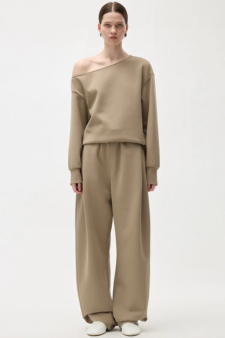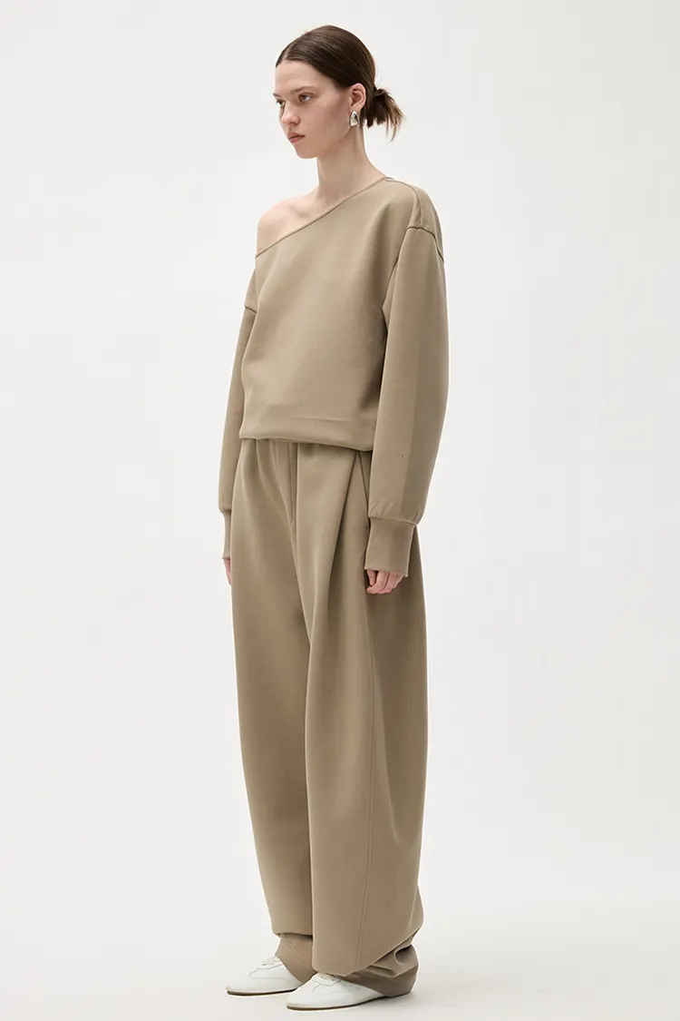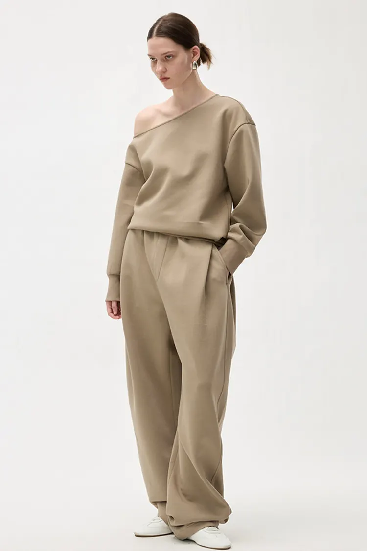 Hela midjebandet på byxorna är designat med plisséteknik. Passformen är lös och bekväm, med en elegant stil. Den kan vackert forma olika benformer och har en hög grad av flexibilitet för benlinjerna. Den lösa bredbensskärningen är inte begränsad av kroppsformen, vilket gör att benen ser smalare och rakare ut. När man går är draperingen naturlig. Den behåller den avslappnade och frisinniga karaktären hos vardagsbyxor samtidigt som den har de snygga och eleganta egenskaperna hos byxor med vida ben. Till skillnad från vanliga träningsbyxor har den en starkare känsla för mode och sofistikering. Målgruppen är bred och försäljningskonverteringen är stabil.
